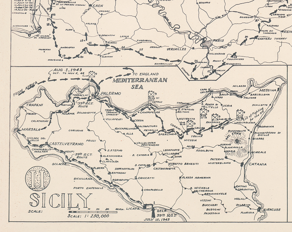 The 9th Infantry Division, known as The Varsity, saw its first combat in the North African invasion on 8 November 1942. The division spent 304 days in combat in both the Mediterranean and European Theaters.