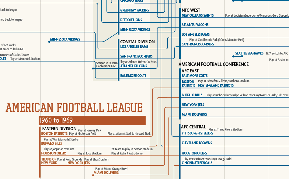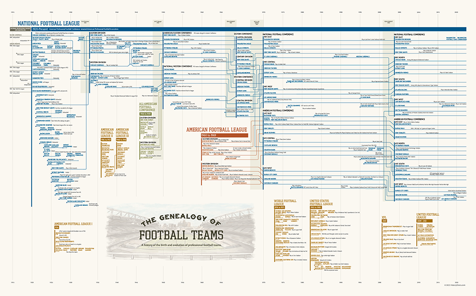 Every city, every team, the Genealogy of Football Teams chronicles the origin and evolution of football teams from all the major professional leagues from the inception of the National Football League (NFL) in 1920 to the American Football League (AFL) to the present day. Maps the history of more than 100 teams and their stadiums over the past 120 years. Includes the defunct World Football League, United States Football League, XFL, and United Football League.
